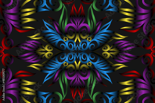 seamless colourful caleidoscope gradient flower art pattern of indonesian traditional tenun batik ethnic dayak ornament for wallpaper ads background sticker or clothing