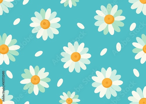 Seamless Daisy Pattern on Blue Background with Scattered Petals for Textile or Wallpaper Design
