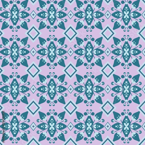 pattern, seamless, wallpaper, vector, design, decoration, illustration, texture, ornament, art, geometric, flower, decor, floral, pink, vintage, tile, textile, retro, fabric, style, repetition, purple, background