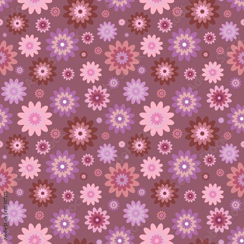 Seamless floral pattern in color palette of dark & light pink & salmon red.