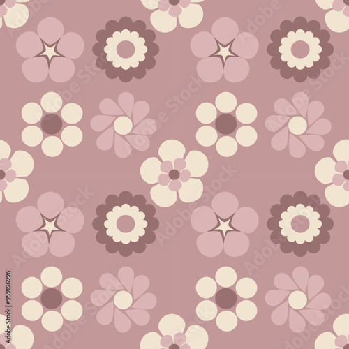 Seamless floral pattern with abstract flowers in flat technique vector illustration