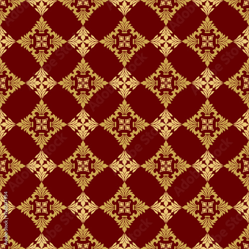 Seamless golden damask and floral pattern for vintage textile and wallpaper design