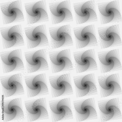 abstract, vector, illustration, vortex, swirl, whirlwind, swirled, eddy, curl, spiral, helix, scroll, loop, volute, church steeple, repeating, helical, winding, corkscrew, rotation, turning, spin, revolution, grey, white, gradient, optical, op, art, background, texture, pattern, continuous, seamless, template, design, square, quadratic, quadrate, foursquare