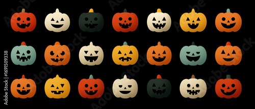Seamless Halloween pattern with colorful pumpkins in orange white and black shades on dark background representing playful spooky festive design
