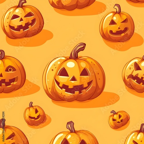 pumpkin, halloween, cartoon, style, seamless, pattern, design, autumn, fall, october, scarey, face, jack-o-lantern, orange, skittish, holiday, festive, seasonal, background, texture, abstract, icon, symbol, cute, fun, creepy, eerie, grisly, ghostly, supernatural, enchanting, whimsical, playful, artsy, retro, vintage, rustic, hand-drawn, digital, rendering, graphic, decorative, repeat, tile, wallpaper, carved