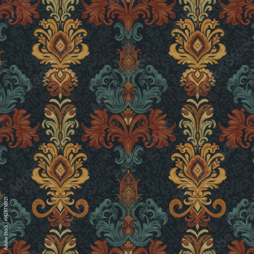 seamless, damask, embroidery, background, aztec, motif, floral, geometric, traditional, pattern, texture, textile, fabric, design, wallpaper, surface, ornate, vintage, bohemian, ethnic, cultural, mexican, amerindian, repeating, illustration, art, craft, background image