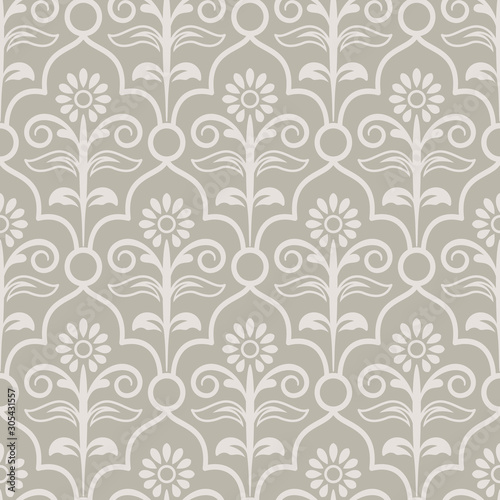 Seamless light beige and white floral wallpaper
