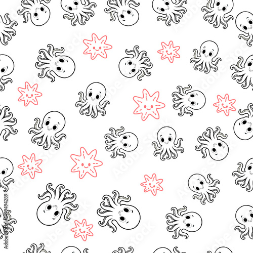 seamless octopus pattern. Seamless pattern with octopus. Funny Octopus Vector Illustration Cartoon, Clipart And Line Art Design on White Background, Funny octopus cartoon vector with white background.