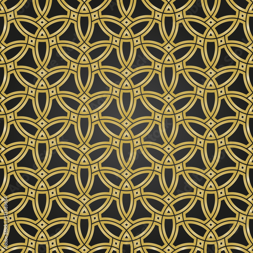 Seamless ornament in arabian style. Geometric abstract black and golden background. Pattern for wallpapers and backgrounds