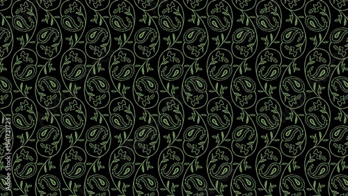 pattern, paisley, floral, seamless, background, design, texture, ornament, decorative, fabric, textile, vintage, retro, print, art, wallpaper, surface, wrapping, black background, light green, floral pattern, dark background, seamless pattern, textile design