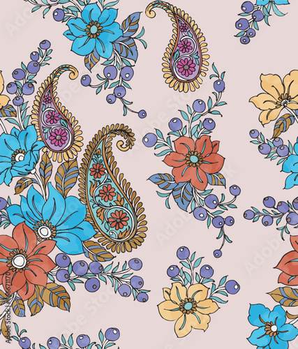 Seamless pattern based on traditional Asian elements Paisley. Traditional colorful seamless paisley pattern for textile design or fabrics. vector illustration.