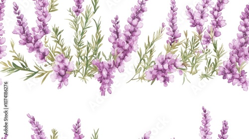 seamless, pattern, delicate, watercolor, heather, flower, decorative, frame, clean, white, background, floral, botanical, artistic, feminine, stylish, modern, minimalist, soft, nature, seasonal, spring, summer, wallpaper, digital, design, textile, print, decoration, no people