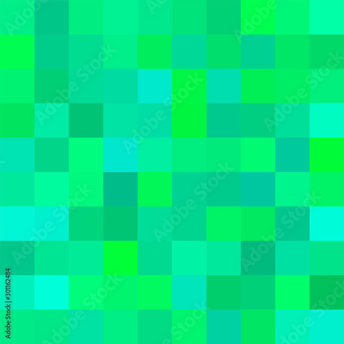 Seamless pattern. Geometrical square background. Green colors. Pixel art style. Vector tile. Abstract illustration.