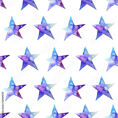 Seamless pattern of Colorful watercolor star icon. Vector illustration on white background. Blue and violet. Isolated. Hand-drawn