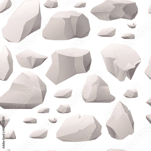 Seamless pattern of gray stones and rocks different sizes and shapes vector illustration on white background