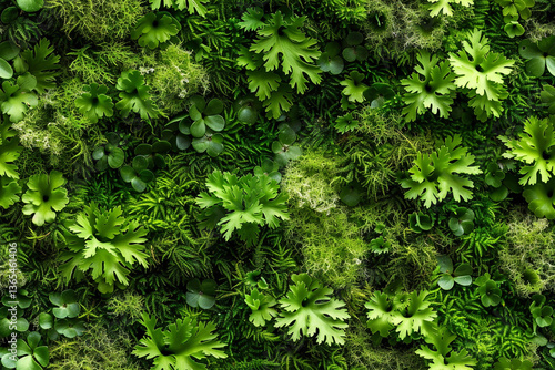 Seamless pattern of lush green foliage and moss, creating a vibrant natural texture perfect for backgrounds and designs