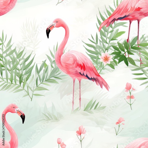 flamingo, seamless, pattern, vacation, fabric, textile, tropical, palm, summer, decoration, cartoon, hawaii, caribbean, watercolor, trendy, paradise, texture, floral, zoo, jungle, decorative, print, art, pink, animal, design, bird, exotic, wallpaper, illustration, background