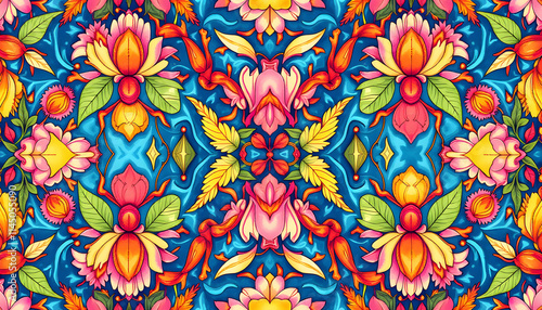 ant, seamless, pattern, prismatic, wildflower, foliage, art nouveau, watercolor, ink, nature, cheerful, atmosphere, bright, neon, colours, kaleidoscope, detailed, organic, shape, design, vibrant, botanical, decorative, intricate, illustration, floral, texture, harmony, creativity, artistic, lively, colourful, retro, whimsical, aesthetic, environment, enchanting, captivating, rich
