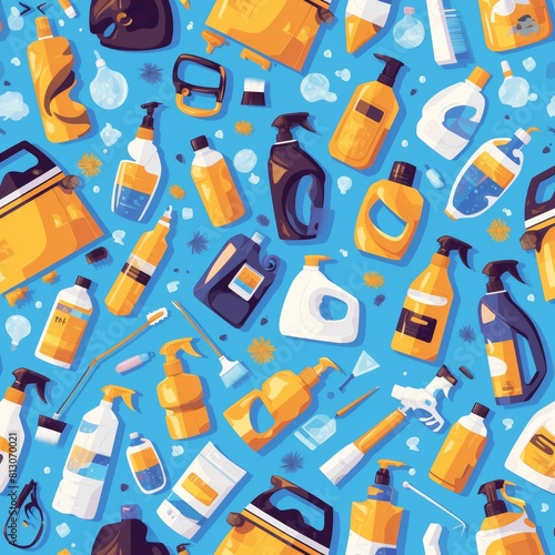 seamless, pattern, professional, cleaning, supply, detergent, bottle, tool, industry, marketing, promotional, material, vibrant, design, texture, background, graphic, brush, hygiene, sanitation, maintenance, disinfection, commercial, business, janitorial, service, array, colourful, print, wallpaper, fabric, textile, cardboard box, branding, stock, plastic, liquid, clean, bleach, soap, household, product, safety, sponge, glove
