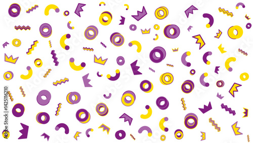 Seamless pattern of purple and yellow geometric shapes. Perfect for backgrounds, textiles, packaging design, and digital projects requiring a modern touch.