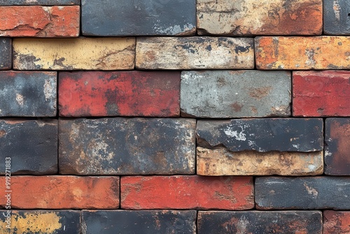 seamless pattern of weathered red bricks with varied textures and subtle color variations creating a realistic and visually interesting architectural background
