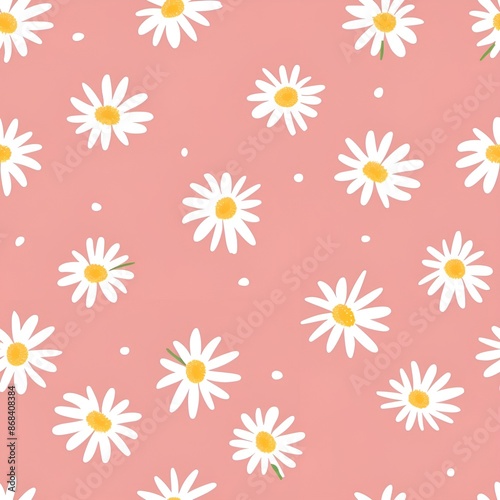 Seamless Pattern: Simple Pink Background with White Daisies in Pastel Colors