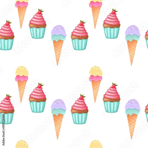 Seamless pattern sweet cupcake, ,paper,textile ,print,happy