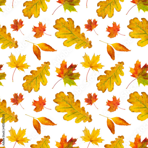 Seamless pattern with autumn leaves isolated on white