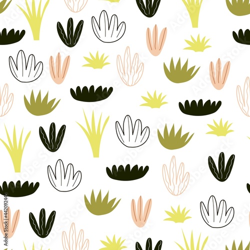seamless pattern with cartoon plants. Colorful vector flat style for kids. hand drawing. baby design for fabric, print, wrapper, textile