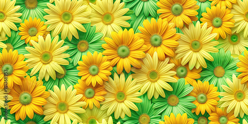 seamless, pattern, colourful, yellow, green, daisy, background, beauty, flower