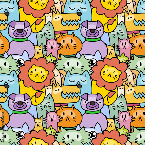 Seamless pattern with cute animals. Dogs, Cats, lion