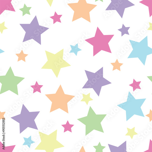 Seamless pattern with cute cartoon colorful stars, for fabric prints, textiles, gift wrapping paper. children's colorful vector, flat style
