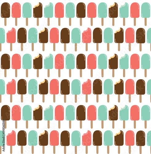 vector, illustration, pattern, design, cartoon, seamless, cream, summer, ice, cute, delicious, dessert, food, fun, ice cream, sweet, tasty, frosty, bright, cold, glacé, chocolate, pink, blue, stick, ice cream
