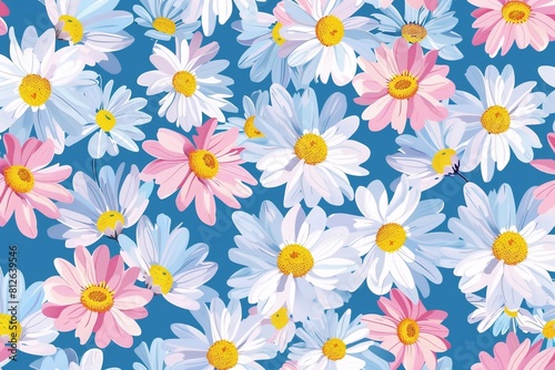seamless pattern, daisy, wallpaper, background, design, clothing, bedding, underclothing, pajama, banner, textile, poster, card, scrapbook, floral, botanical, delicate, fresh, spring, whimsical, decorative, stylish, modern, artistic, graphic, fabric, print