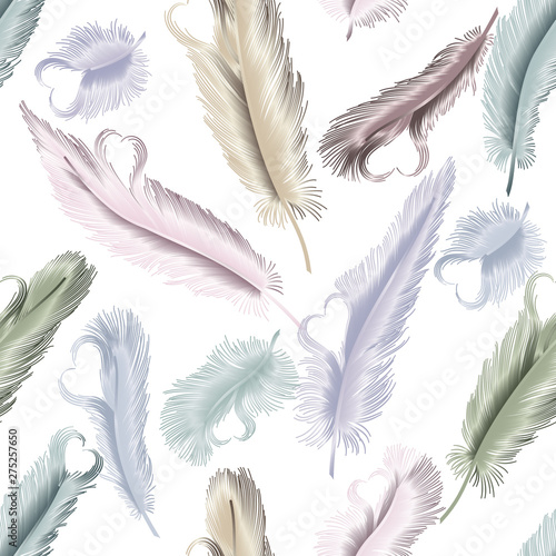 Seamless pattern with feathers-hearts. Vector illustration. EPS 10
