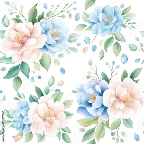 seamless, floral pattern, floral, decorative, watercolor, botanical, aquarelle, flower petals, blossom, pattern, spring, bloom, springtime, ornamental, pastel, design, delicate, painting, drawing, leaf, summer, art, foliage, nature, elegant