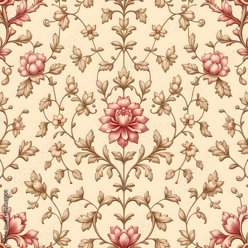 pattern, seamless, wallpaper, floral, flower, vector, ornament, vintage, leaf, design, illustration, decoration, damask, texture, art, decor, textile, retro, ornate, nature, swirl, tile, element, paper, baroque, victorian, antique
