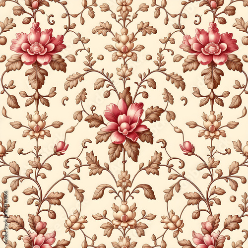 pattern, seamless, wallpaper, floral, flower, vector, ornament, vintage, leaf, design, illustration, decoration, damask, texture, art, decor, textile, retro, ornate, nature, swirl, tile, element, paper, baroque, victorian, antique