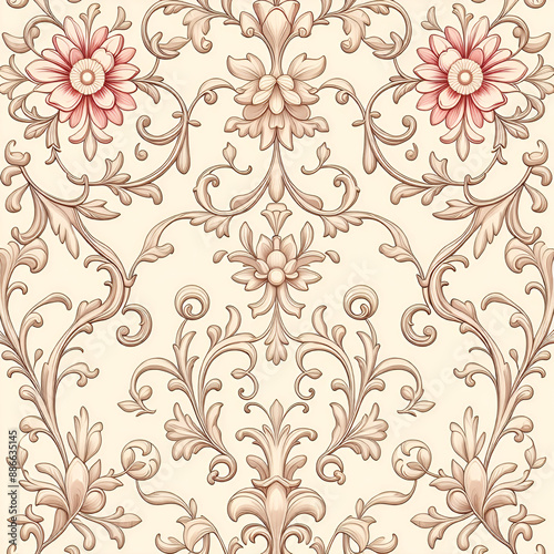 pattern, seamless, wallpaper, floral, flower, vector, ornament, vintage, leaf, design, illustration, decoration, damask, texture, art, decor, textile, retro, ornate, nature, swirl, tile, element, paper, baroque, victorian, antique