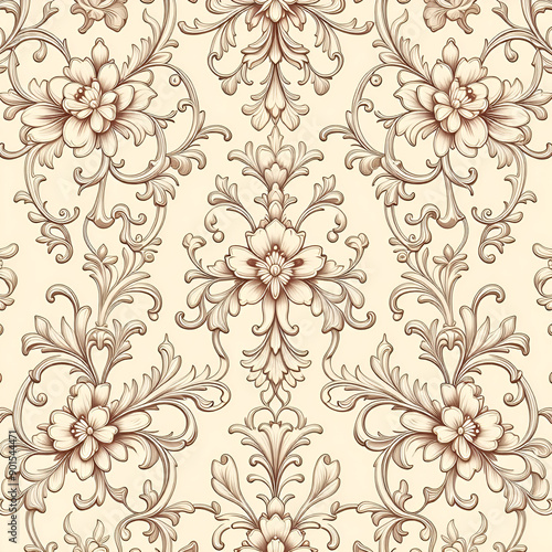 pattern, seamless, wallpaper, floral, flower, vector, ornament, vintage, leaf, design, illustration, decoration, damask, texture, art, decor, textile, retro, ornate, nature, swirl, tile, element, paper, baroque, victorian, antique