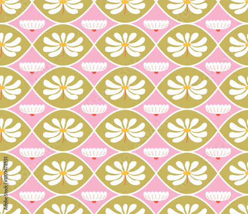 flower, floral, geometric, groovy, flower child, seamless, pattern, 1970s, daisy, hallucinogen, vector, illustration, spring, nature, wallpaper, summer, blossom, plant, bloom, simple, retro, vintage, fashionable, print, fabric, textile, background, colourful, abstract, botanical, fashion, infantile, naive, ornament, 1970, 70s, style, funky, organic, flora, festival, nostalgia, ornamental, folk, antique, chamomile, leaf, damask