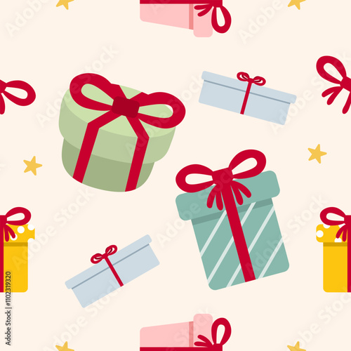 Seamless pattern with gift boxes background Vector Image, pastel color