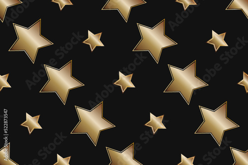 Seamless pattern with gold stars on black background Vector illustration Texture for wrapping and fabric