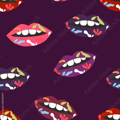 passion, red lips, purple, wrapping, modern, graphic, seamless pattern, many-coloured, woman, many-coloured, bright, texture, fabric, glamour, romantic, textile, valentine, seamless, background, pattern, lip, illustration, design, mouth, cartoon, female, art, red, fashion, beauty, teeth, girl, lip, kiss, smile, sexy, love, pop, symbol, make-up, style