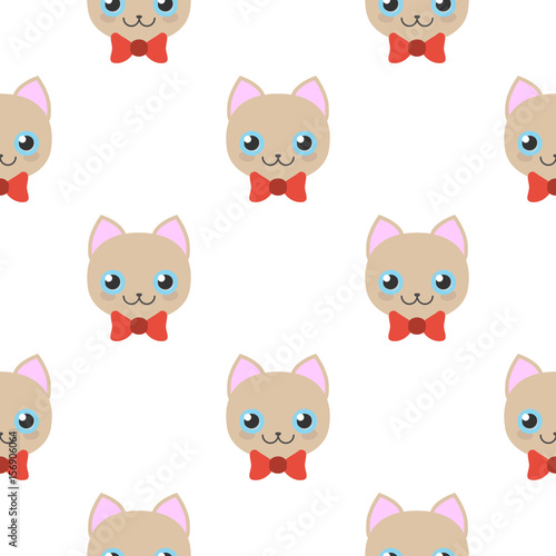 Seamless pattern with muzzle kittens on white background. Cat pets