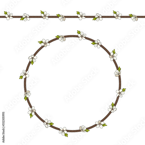 pattern, seamless, background, endless, apple, apricot, flower, tree branch, plant, bush, tree, vector, illustration, floral, netting, shade, net, pure, texture, textile, print, white, colours, bud, element, rope, on white, leaf, nature, blossoming, spring, tender, fragrant, design, frame, circle, graphic, blossom, cherry, sakura, decoration, bloom, blooming, garden, season, outline, oriental, decorative