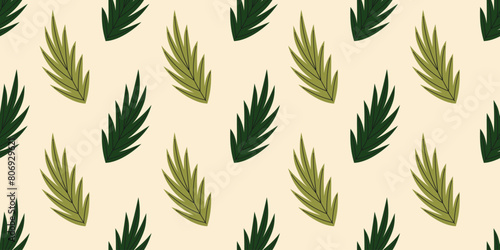 Seamless pattern with palm leaves. Abstract Tropical foliage background. Modern exotic jungle plants. Flat Vector illustration