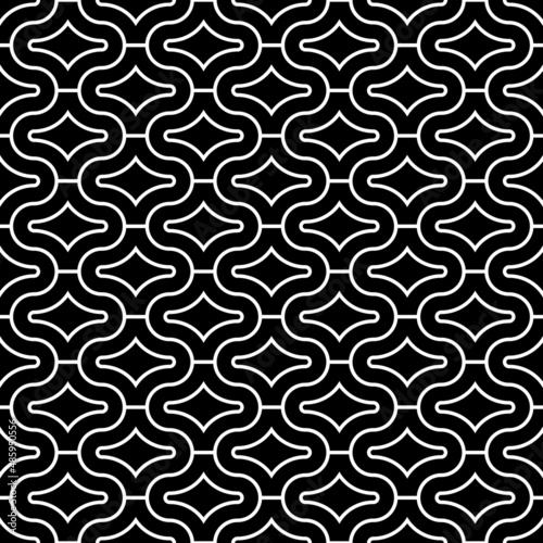 Seamless pattern with paseo ornament. Oriental traditional ornamentation with repeated rounded shapes. Window tracery wallpaper. Grid motif. Digital paper, textile print, web design. Vector art image.