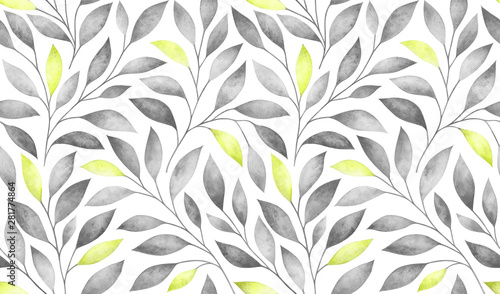 Seamless pattern with stylized tree branches. Watercolor illustration.