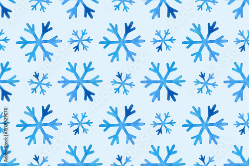Seamless pattern with watercolor snowflakes on a blue background. Winter watercolor background.